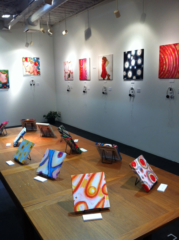 弊社で行ったのはテキスタイルの出力のみで、お客様が個展用にパネルとして加工されました。(凄いです!!(@_@;))